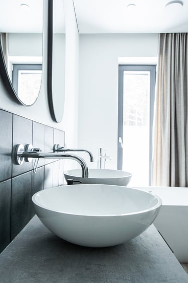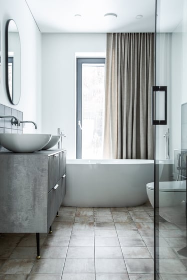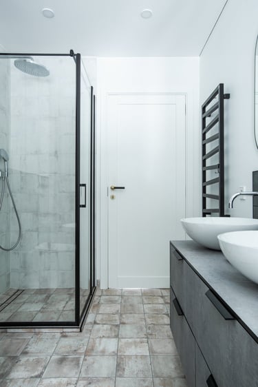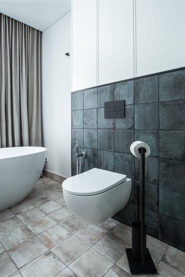 Vonios kambariui rinkomės išskirtines vintažines plyteles. Kuriomis dengiamė tik reikalingiausius plotus. Visą kitą dažėme baltai, kad sukurti kambario atmosferą.