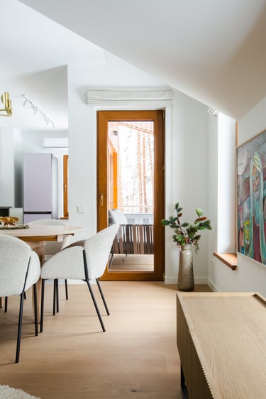 Kuriant šį interjerą, pasirinkome turėti šviesų pagrindą - baltas sienas, bet įnešti interjerui daugiau spalvų ir skirtingų stiliaus elementų.